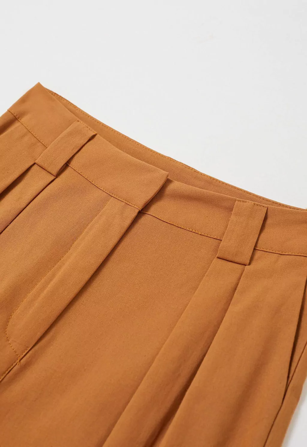 O destaque deste conjunto é a calça, adornada com pregas habilmente posicionadas que adicionam um toque clássico e moderno. As pregas conferem um movimento fluido e uma elegância extra, elevando o conjunto a um patamar de sofisticação sem esforço.