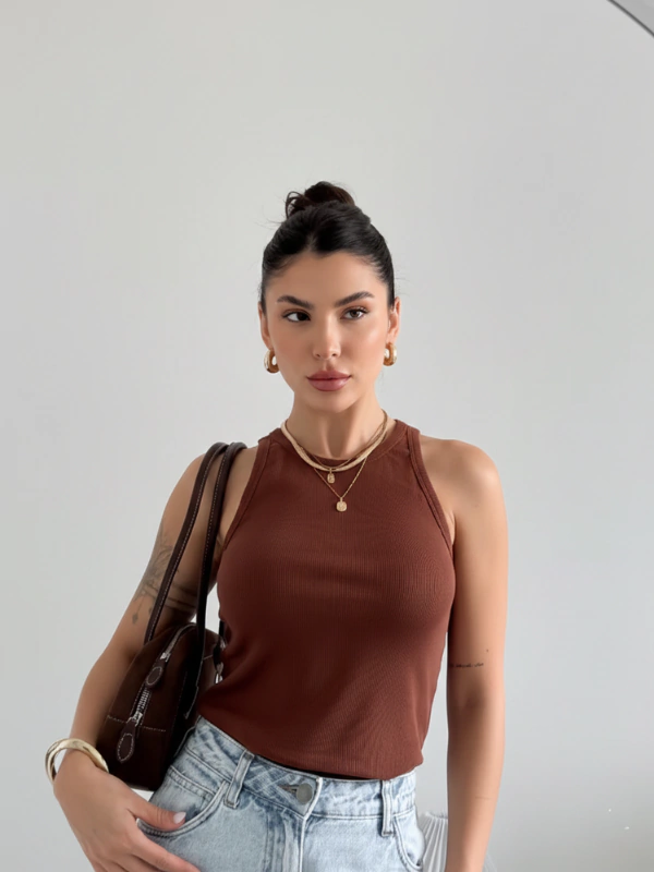 Confeccionada em ribana canelada com elasticidade confortável, valoriza a silhueta sem comprometer a mobilidade. A modelagem nadador e o acabamento limpo trazem modernidade e praticidade para o cotidiano urbano, fazendo dela um essencial atemporal para múltiplas combinações.